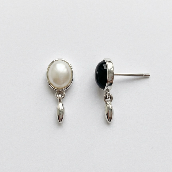 Sweet Tempest Dangle Earrings in Pearl and Black Onyx